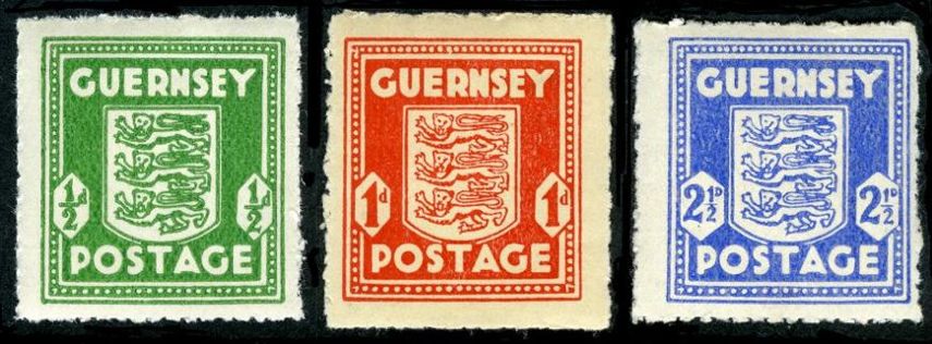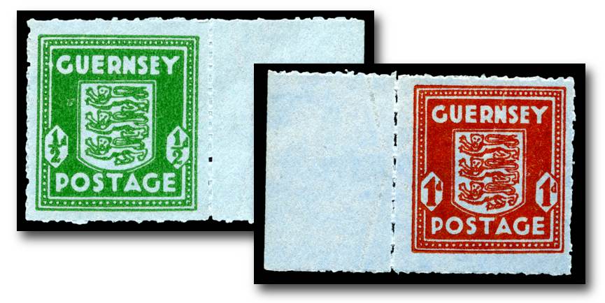 Jersey’s stamps were designed by a retired British army officer, artist and historian, Col. Norman Victor Lacey Rybot, and printed by the Jersey Evening Post. Guernsey’s three stamps were designed by E.W. Vaudin, an artist employed by the Guernsey Press Co. Ltd., which printed them. The stamps are notable for their crude designs and poor printing quality. They exist in many shades and were printed on various types of paper, including newsprint.