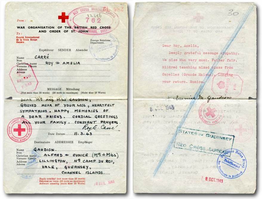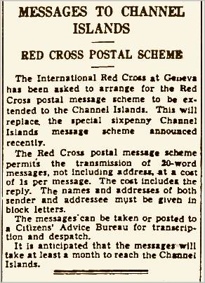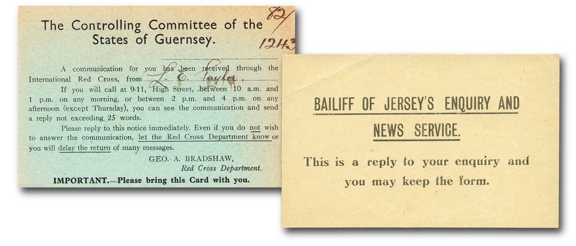 When Germany occupied the Channel Islands, islanders lost a privilege that they had enjoyed for more than a century: They could no longer send or receive mail from abroad. However, thanks to the International Committee of the Red Cross (I.C.R.C.), it would soon become possible to exchange brief messages with relatives and friends living abroad.