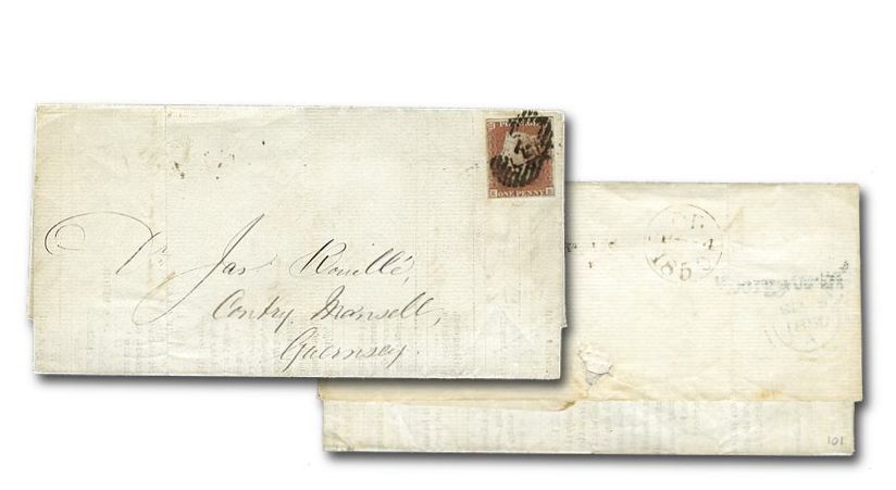 • In 1850, it took just one day for the cover shown at the top of this page to reach Guernsey from London, a distance of about 180 miles (290 km); that was probably a normal transit time. One or possibly two more days, depending on sailings from Guernsey to the United Kingdom, were probably required for a reply to be received at a London address.
