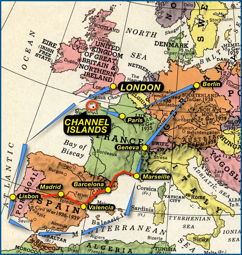 • From Lisbon, the messages were sent on to Marseilles either by sea around Gibraltar and through the Mediterranean, or by rail through Spain and Vichy France,2 probably via Madrid, Valencia, and Barcelona.