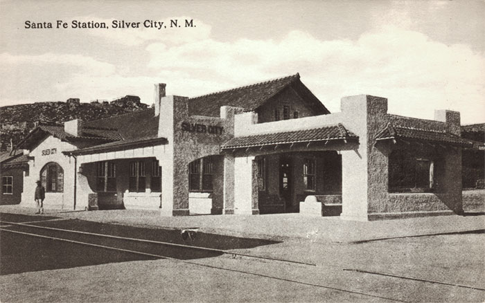 A postcard picturing the Atchison, Topeka-and-Santa Fe Railway station in Silver City, N.M., built in 1915 at a cost of $25,000 and dismantled in the 1960s.