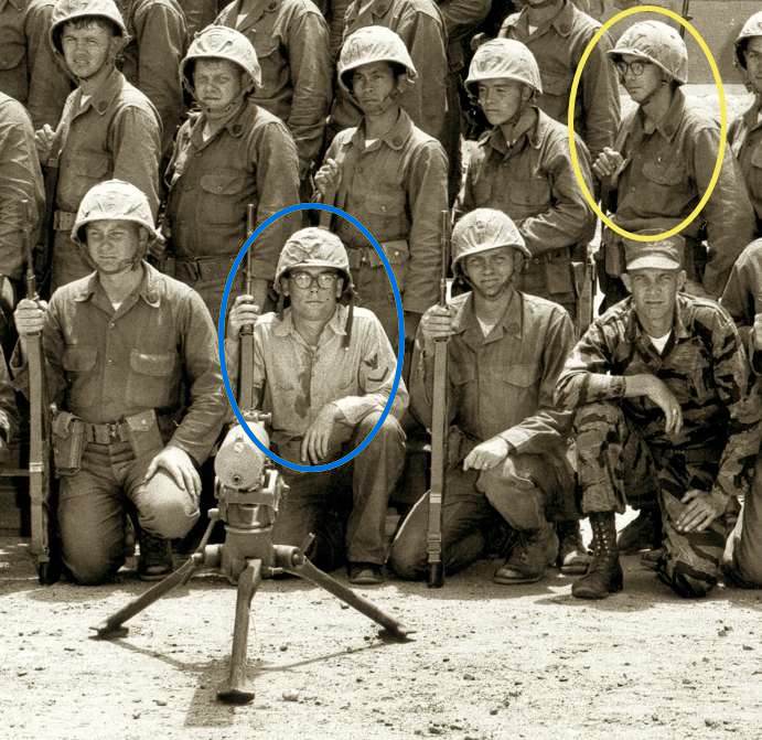 It’s easy to spot me in the photograph: I’m just behind the machine gun on the left. You can’t miss me. I’m not wearing Marine fatigues. I’m wearing U.S. Navy dungarees and a light cotton shirt. Therein lies this tale.