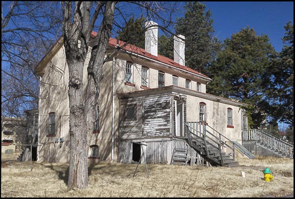 Even though it has a National Historic Site designation, the state will not allow any work done at all. The physical plant workers try to at least keep the grass mowed, but the buildings are in deplorable shape with vandals breaking out windows and gang grafitti is on many interior walls. I noticed the other day that the bronze cornerstone on the hospital had been stolen.