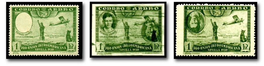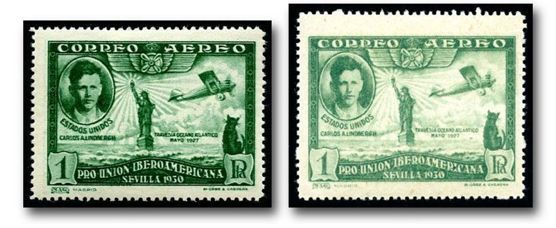 The Spanish Lindbergh stamp, and others of the same set, were printed privately and used as postage for only three days. The owners of the printing plates apparently went on to create poor-quality reprints for the the stamp packet trade.